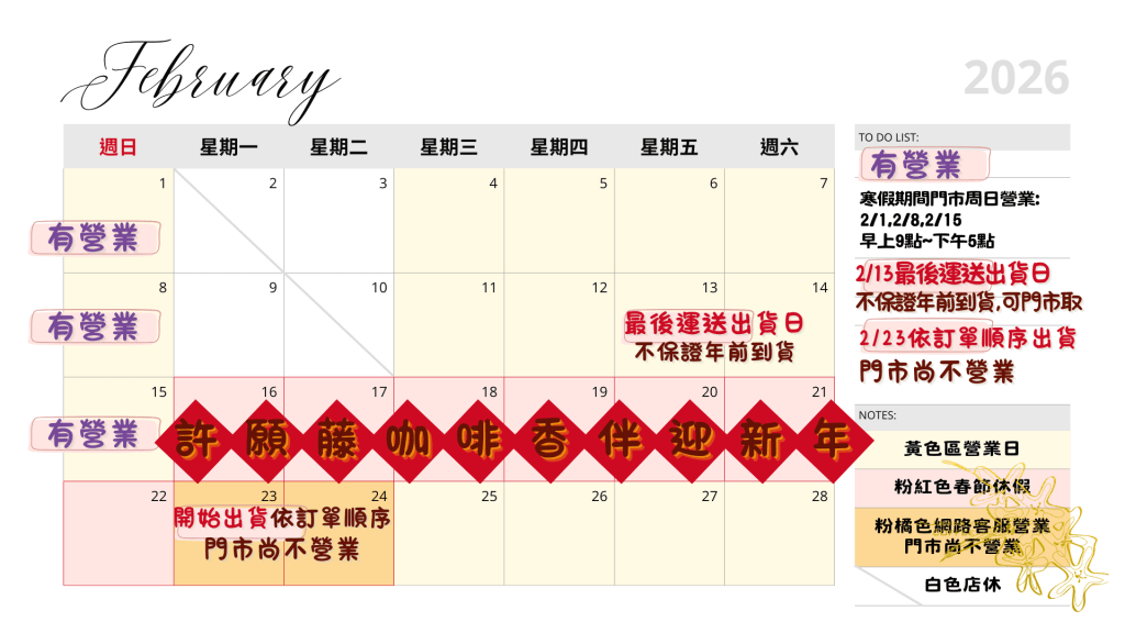 📌2/16~2/22春節店休